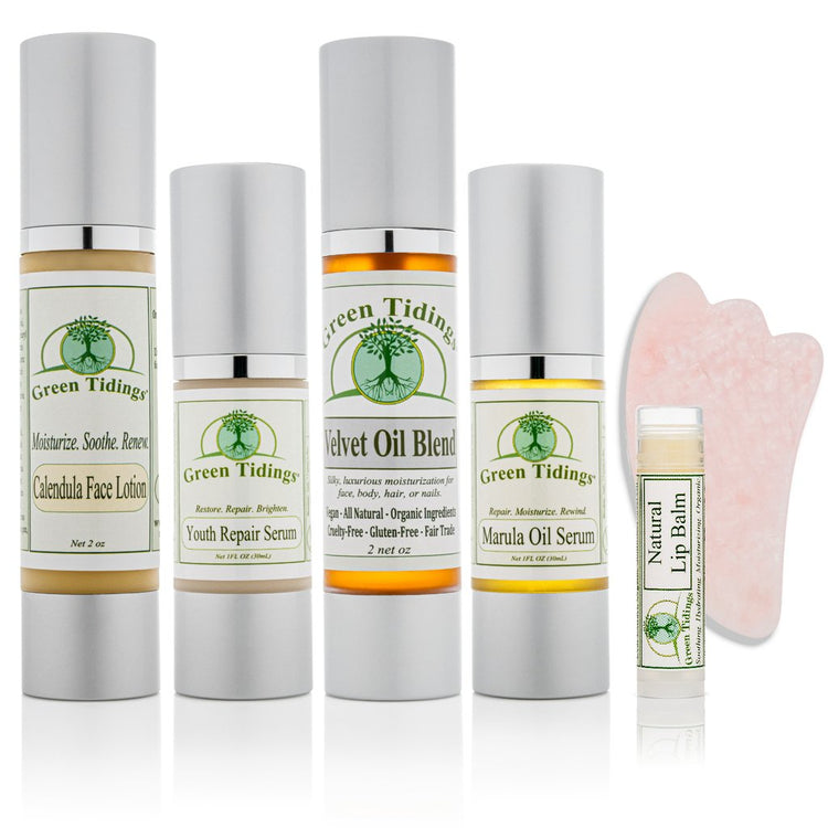 At Green Tidings, our mission is to use vegan, gluten-free, cruelty-free, safe, non-toxic, and no synthetic ingredients in our natural deodorant and skin care products. We've carefully selected each ingredient and are proud to offer them to you. We're always adding natural body care products to our selection, so check back frequently to see what we've come up with!