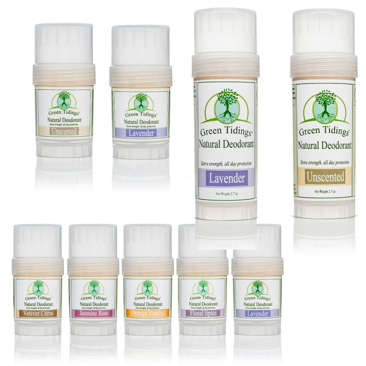 Green Tidings All Natural Deodorant is made in small batches under extremely sanitary conditions in a solar-powered facility. Our processes and products are compatible with paleo and primal lifestyles, and have been hand-crafted for those who struggle with food and chemical sensitivities in mind. Bulk and wholesale pricing is available.